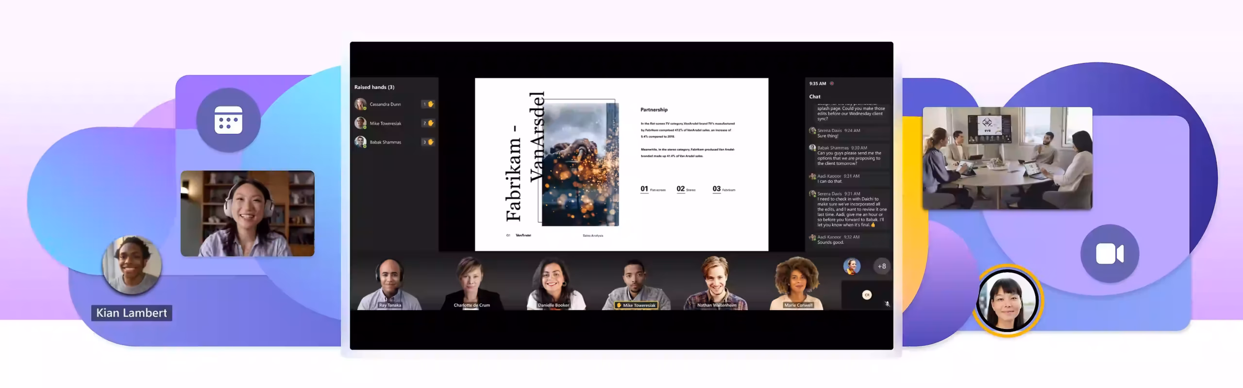 Foster deeper connection between in-person and remote participants through inclusive video layouts. Focus participants by spotlighting important video and content.